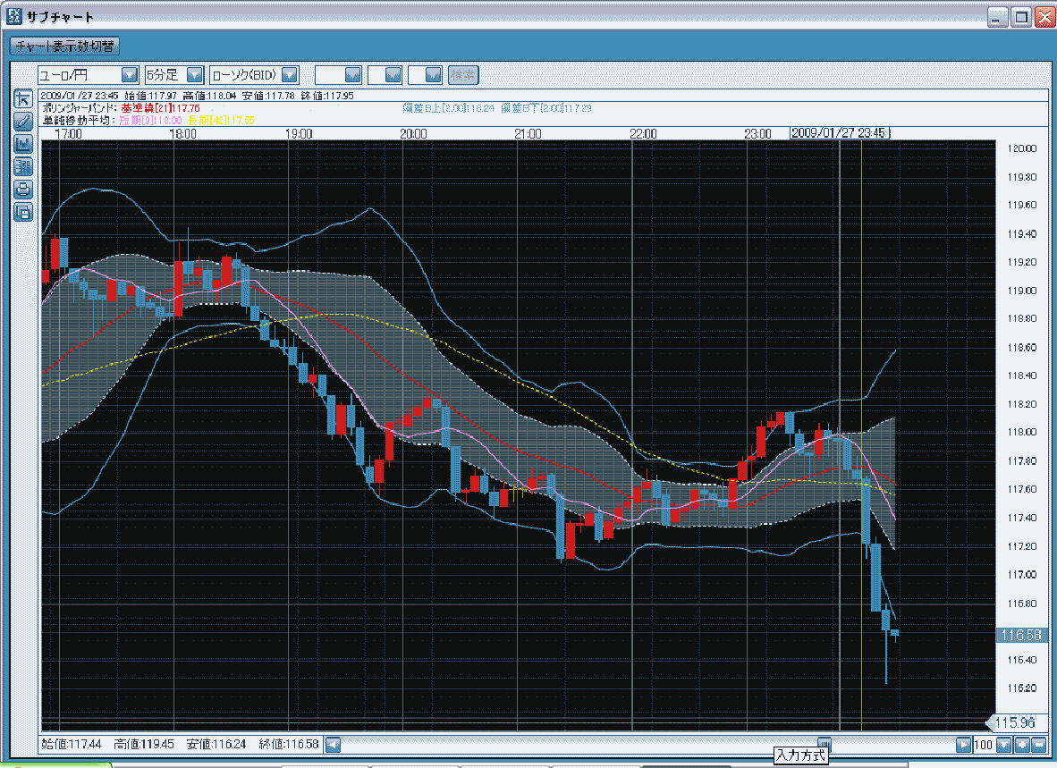 今のところ、ユーロ/円でリミット30~40銭、ストップ25銭(※エントリー注文は全て逆指値)を基本としているんですが、つまらないストップに引っかかる回数が思ったよりも多いです。