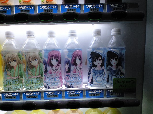 今日東京ビッグサイトに行ったら、自販機に珍しいパッケージのお茶と水を売っていました。