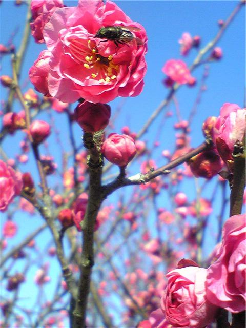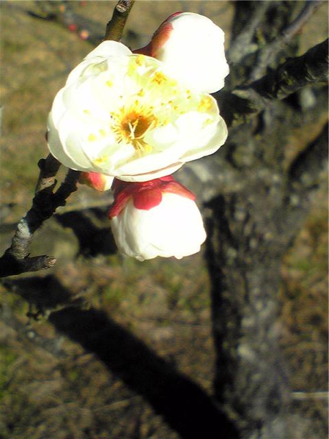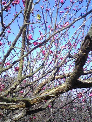 花にむしとメジロが来ていました。なかなか近くに来ません。真ん中写真の上のほうにメジロが見えます。ちょっと暖かいとこうやって来ます。ミツバチも来ていましたが、逃げられました。