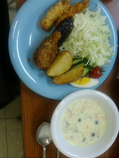 今日はデイケアで調理実習してきました 月に1回のグループプログラムなんだけど 今回は キノコのスープ なすの肉詰め揚げ ポテトフライ エビフライでした 味の方は大成功って感じでおいしくできました 次回はどんな料理になるか楽しみ♪