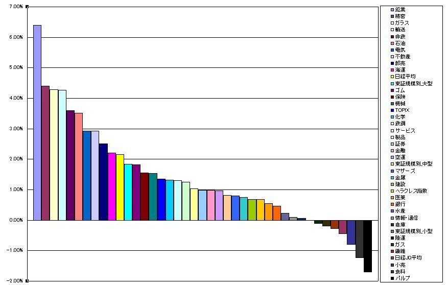1.鉱業6.40% (-0.32%)