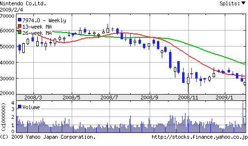 任天堂の「マリオカートWii」、08年日米英年間ソフト販売数トップ(ヤフーファイナンスより)