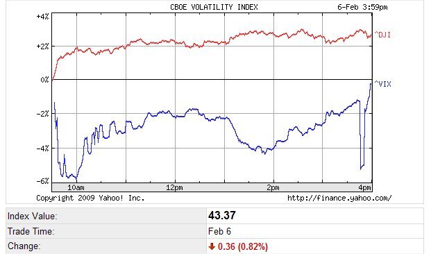 ・恐怖指数と呼ばれてるVIX指数ですが、昨日は順調に指数が下落していおたものの、引け間際に急速に上昇(悪化)したのはナゼでしょう?