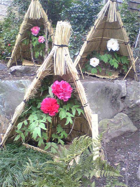 徳川園の冬は粋です。こんな趣向で1花づつ咲かせています。