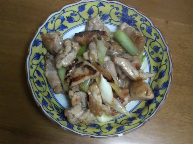 祝日で今日はゆっくりできたためかだいぶ風邪も治って参り、新作ではないものの料理もどうにか出来申したので、日記の表紙程度に軽く掲載させて頂きまする。今日の料理は、以前一度紹介させて頂いた「鶏もも肉とネギの塩山椒炒め」でござりまする。