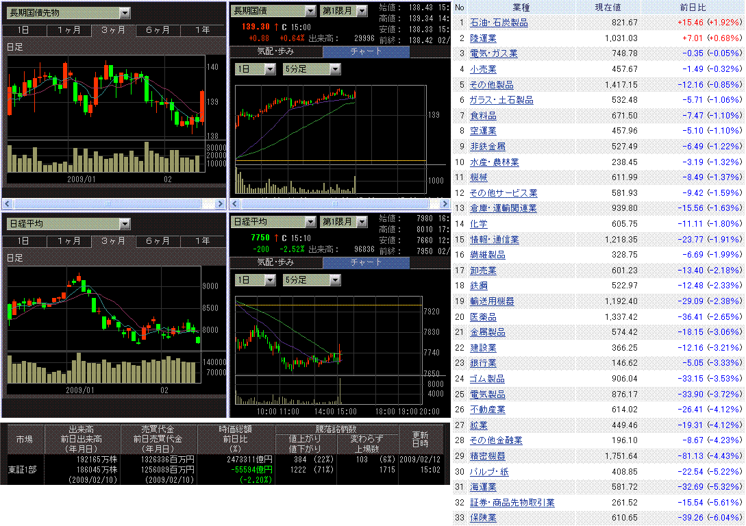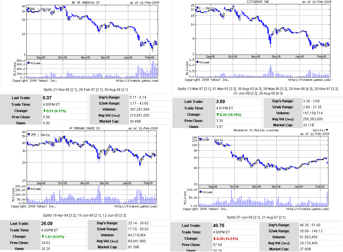 火曜日の米株は、発表された金融安定化策が具体性を欠くものだったことから大幅安。水曜日は小幅反発。景気対策法案が成立に向けて前進という以外は特に目立ったニュースはありませんでしたが、まあ自律反発でしょう。