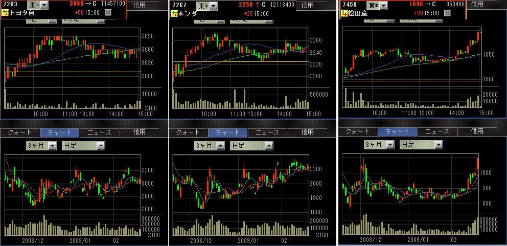 増産と言っても、どの程度の水準なのかが大事ですよね。仮に30%減産の後に3%増産しても・・・。株価は、円安のせいもあるのでしょうけど底堅い動きが続いていますね。