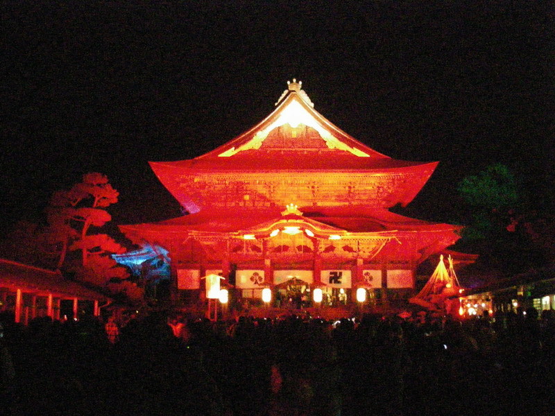 善光寺がライトアップ中とのことで、夕食後に参拝することにしました。