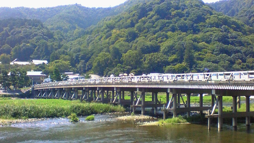 まずは、嵐山と言えばの橋を発見。ミーハーに写真をパシャリ!(写真左)