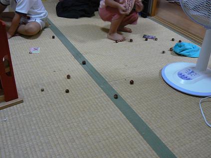 1号♂、2号♂、3号♀が拾ってきたどんぐりで遊んでたら