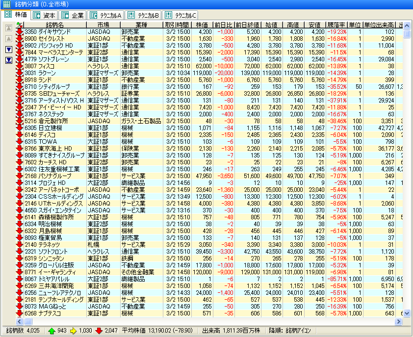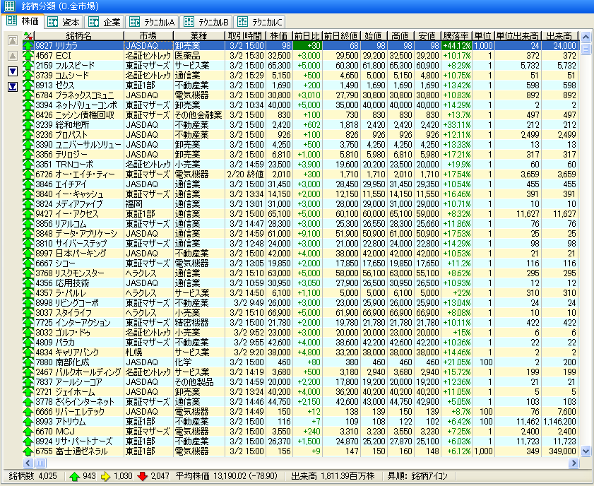 ダイキサウンドなんかやっと下がり始めた。先週下げ予想でガンガン上がるんだもの。