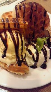 何ともカロリーの高そうな(苦笑)、バナナとマロンとワッフルと、アイスのスイーツ。