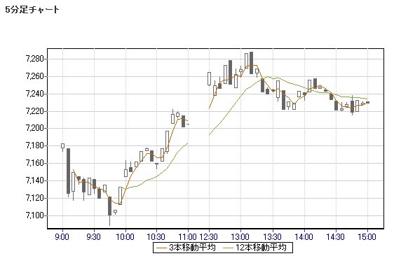 日経平均株価 7,229.72 -50.43 -0.69%