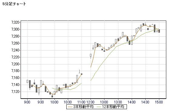 日経平均株価7,290.96 +61.24 +0.85%