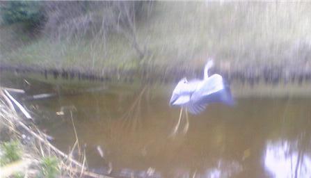 写真は低空飛行:低迷する株価を表しています。ダイサギでしょうか、池に近づいたら逃げられました。