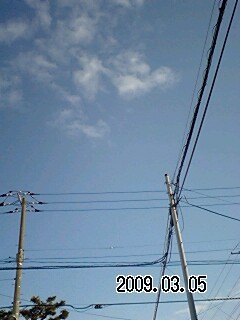 お写真は、直線の電線と規則性なく漂う白い雲が対照的でおもしろいです。