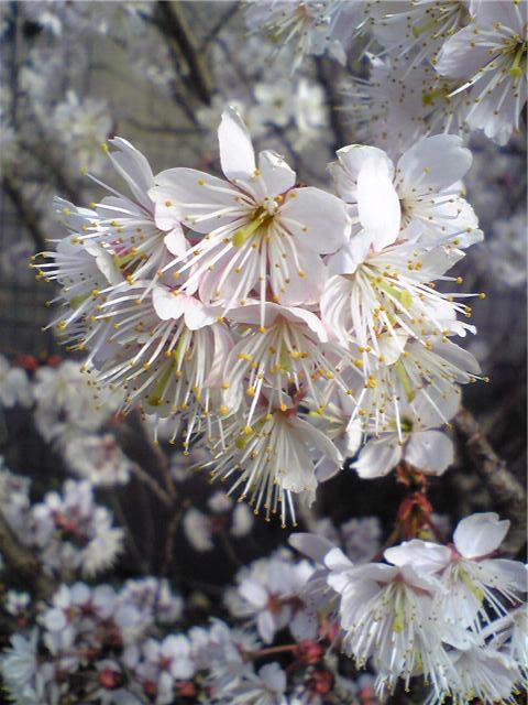 近くにいろんな種類の桜があり、遅咲きの梅もあり、昨日などはモンシロチョウが飛んできました。