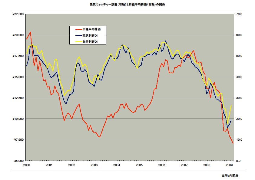 前回も言いましたが、本来は景気ウォッチャー調査と日経平均株価には相関関係があります。