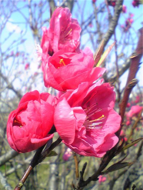 やはり、桃でしたか(汗)。こちらは桃の栽培が結構盛んで知人のところで桃の木を見るので、桃の花は、白いものと思い込んでました。書き込んだ後、ちょっと気になって、がくや花びらを調べたのですが・・・残念。