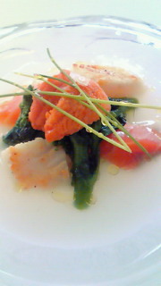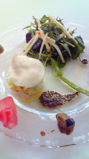 前菜は、ガラスの器で、ちょっと変わった形でした。