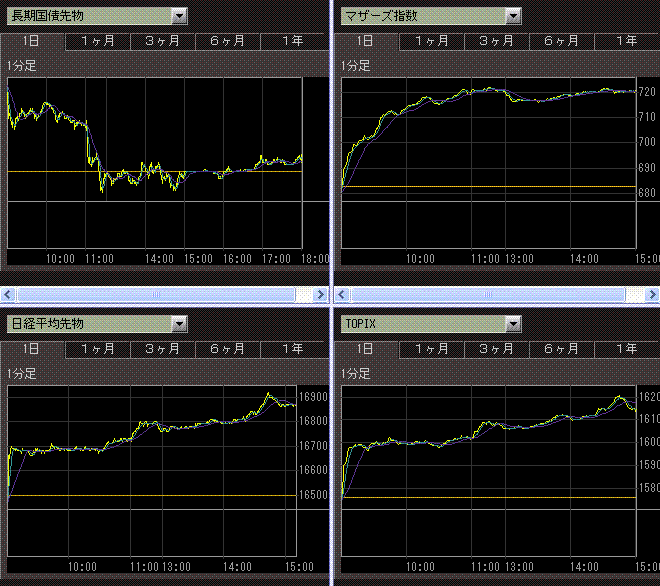 ・日本市場は大幅続伸。先物の買い需要が非常に強かったです。個別ではこれまで売られていた、不動産、保険、銀行、証券、消費者金融などの内需が大幅高となっていました。新興市場は今日も大幅高。でもですね、これって外国人が積極的に買いにきたわけではないと思うのです。以下、推測を書きます(正しい保証は無く、私個人の考えです)