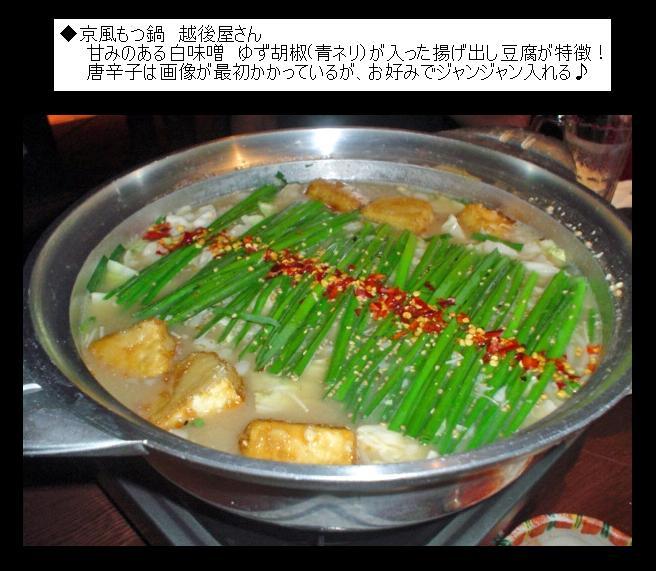 京風もつ鍋:越後屋さんですね、今度 かみさん連れて