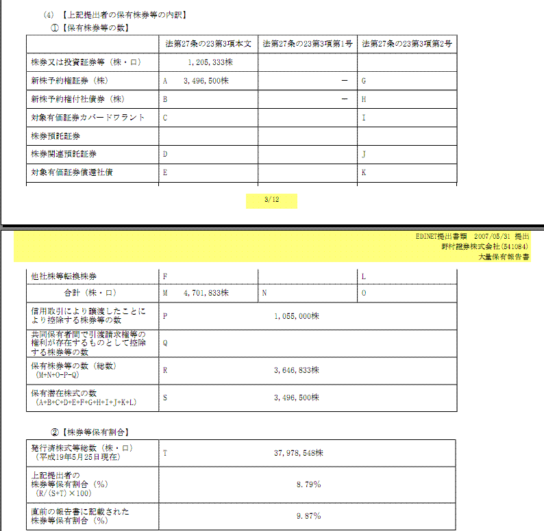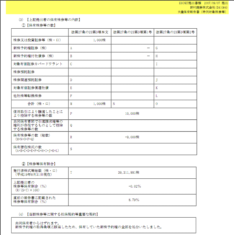 3. 野村證券の9/7の保有状況