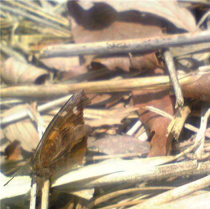 最後の絵でさすがにわかります。テングチョウも日向ぼっこを始めました。