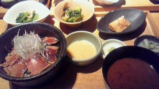 和食の定食を。お魚もおいしそうだったけど、折角なら近くでは食べない炙りまぐろ丼!