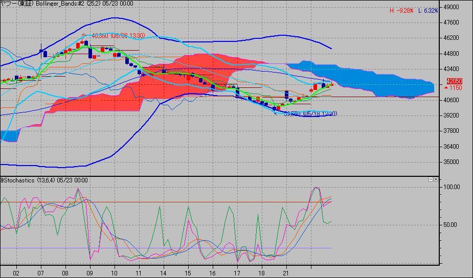 ヤフーは予定どおり終了です。引けは60分足の一目雲の真下まできました。
