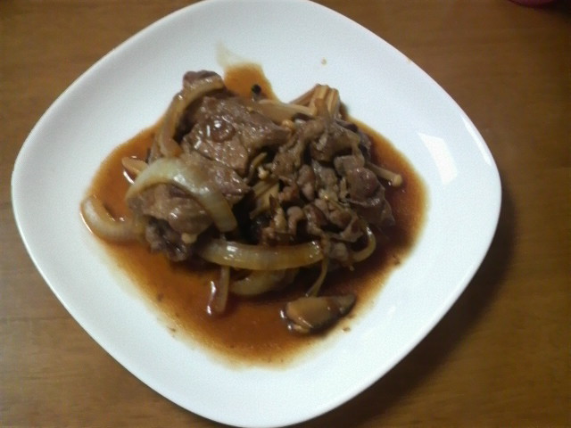 今週の料理は(再び問いまするが、たしか料理のSNSではなかったような…)一応新作、『豚肉ときのこのポン酢しょうゆ照り焼き』でござる。元の料理は豚の生姜焼き。これに料理誌で拝見したポン酢照り焼き手法にアレンジしてみた次第。