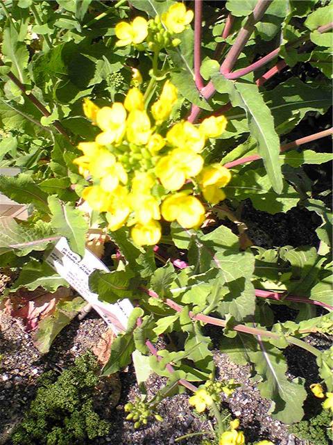 蕪の花、ブロコリーの花、アカスモモの花です。ブーゲンビリアやベゴニアの花は普通に見られますがこんな美味しい花たちは見られません。かぶの花で株にも花が咲くようにお願いしましょう。