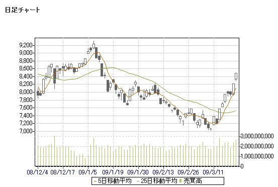日経平均株価 8,488.30 +272.77 +3.32%