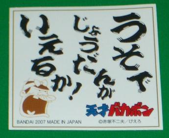 右の写真は、ポリンキー ウナギイヌのかばやき味のおまけで付いていたバカボンのパパ格言シール