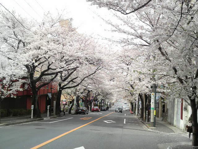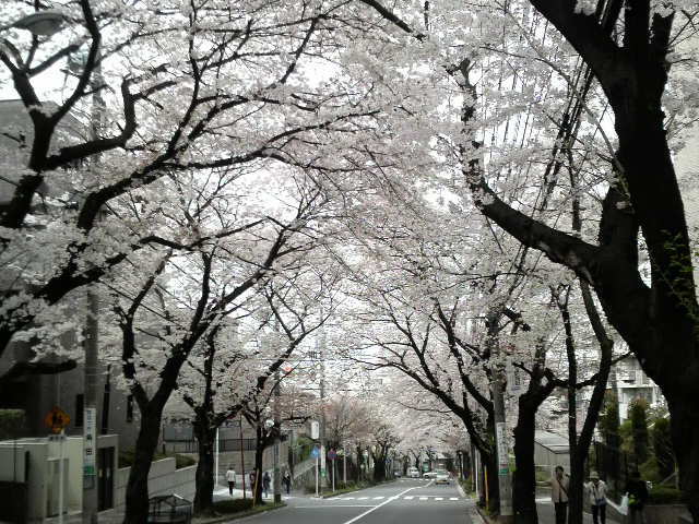 昼間の写真は、拙者隣町にある桜並木。ちょうど桜が満開で、あたかもトンネルのようでござりました。この通りは周辺の桜の名所となっており、皆その美しさに足を止めておりまする。忙しい人もそうでない人も、みんな暫しの心の休息…(^^)