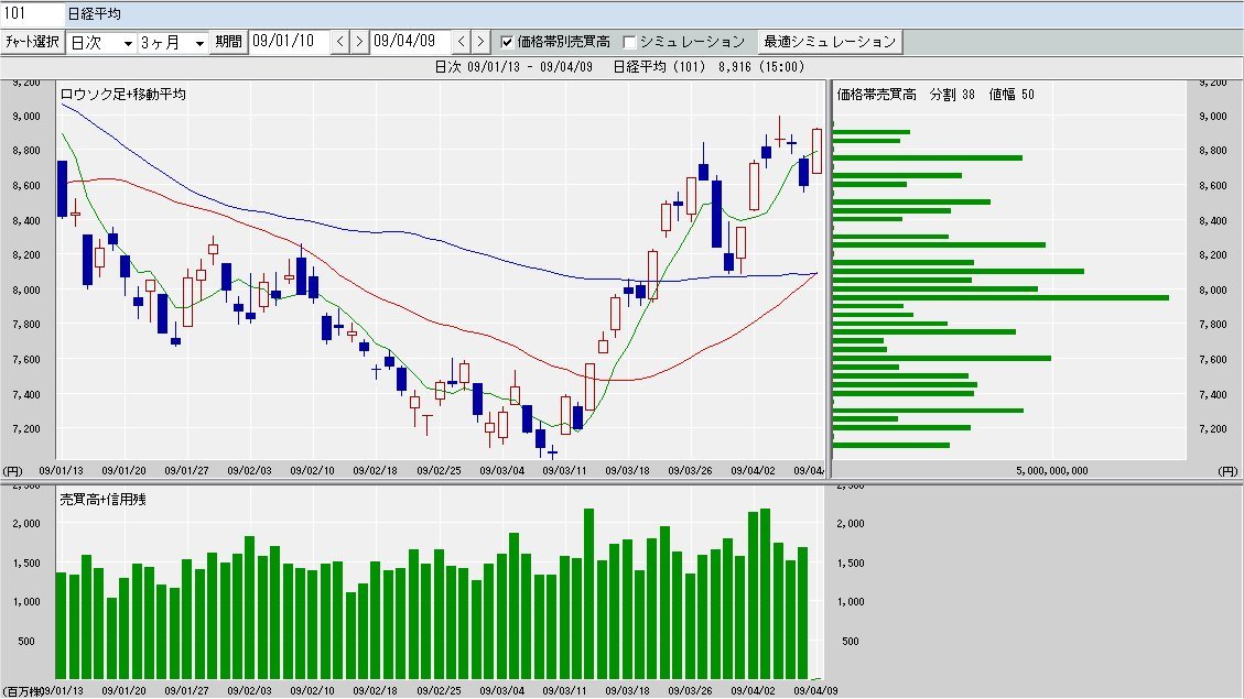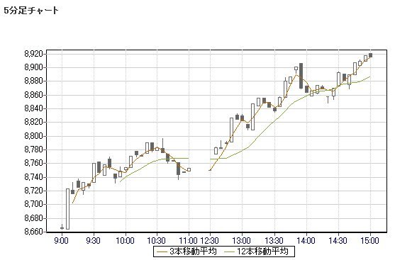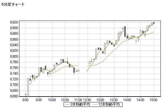 本日は高値引け。明日のSQで9000円を狙う、との声も