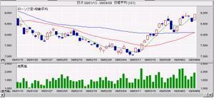 上が2003年、下が2009年のチャート。(野村證券ホームトレードのチャートより)