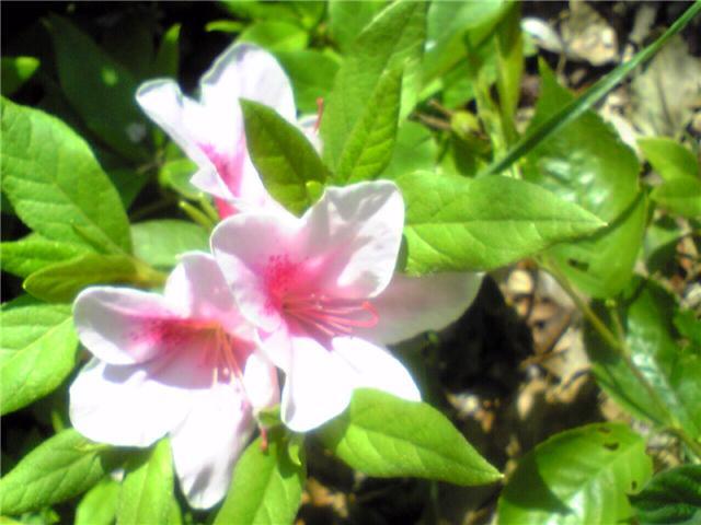 ヒラドツツジの一種のオオムラサキツツジが咲き始めた。もう6月の陽気になってきて一気に咲き始めた。山に行けば色々な花が見えそうだ。朝日がまぶしい。