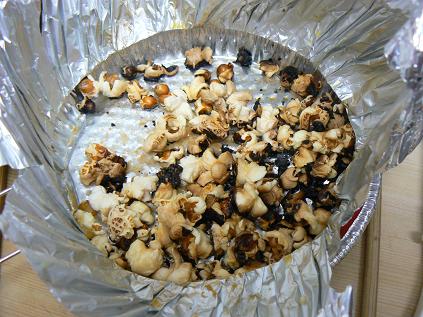 ポップコーンは弾けてないの多数、焦げ多数。