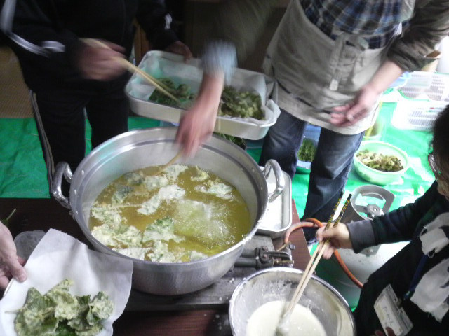 1時間ほど歩いた後、昼食ではさっそく採ったばかりの野草を天ぷらにしていただきました。天ぷらにすると苦味はほとんど感じませんでした。