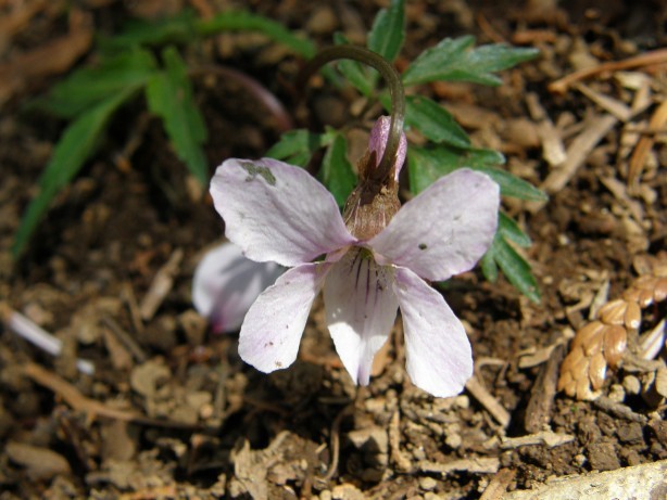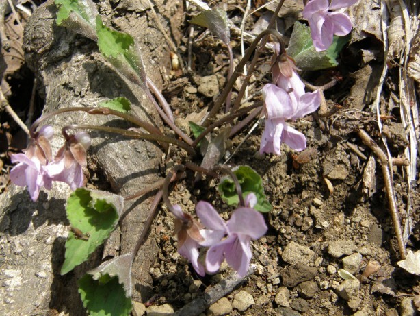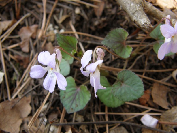 最も一般的に見かける「タチツボスミレ」以外にもいくつかのスミレが咲いていました。葉が独特のエイザンスミレは確かですが、その他は自信ありません。
