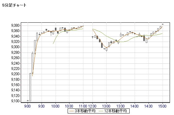 日経平均株価 9,385.70 +408.33 +4.55%