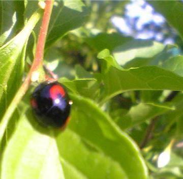 うちのジューンベリーにもアブラムシがいっぱいいて、それを食べにテントウムシもやってきています。