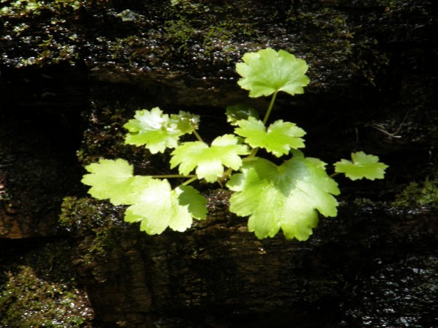 花が咲いていませんが、岩に張り付いた葉の色、光沢が綺麗でカメラに収めました。