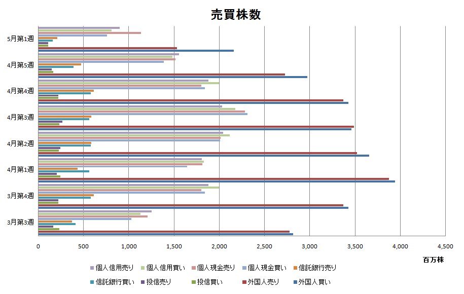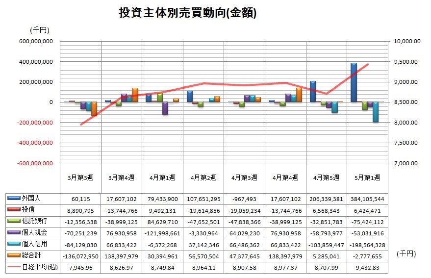 5月第1週の投資主体別売買動向(金額ベース)は、