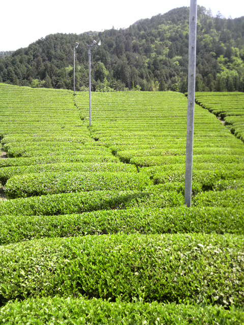 いつもの郡上八幡インターの一つ手前のインターで降りて細い山道を行くこと40分、お茶畑が現れました。