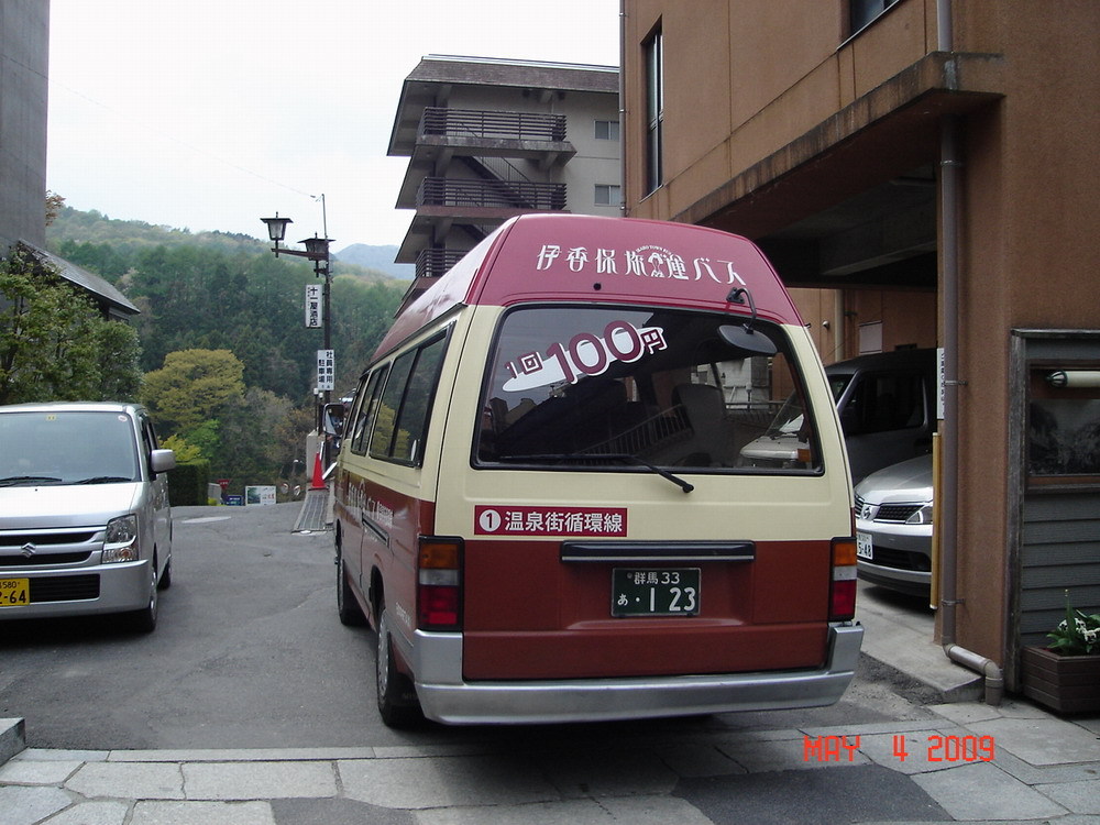 温泉めぐりのミニバスは1回100円で割安。