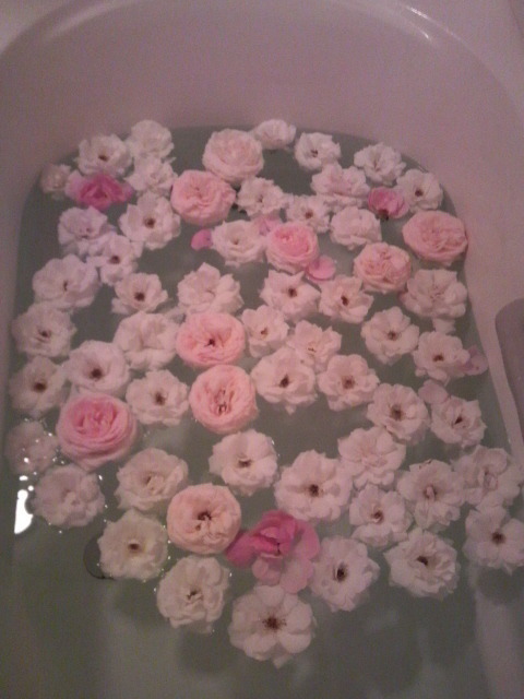以前日記に書いたバラ温泉を思い出し、我が家の風呂もバラ風呂にしてみました。