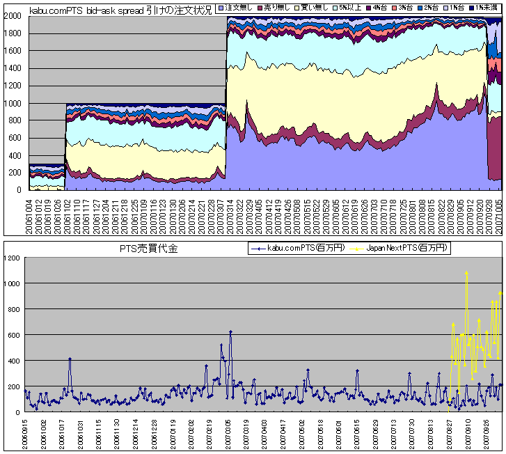 kabu.comPTSの引けの注文状況と、売買代金のグラフです