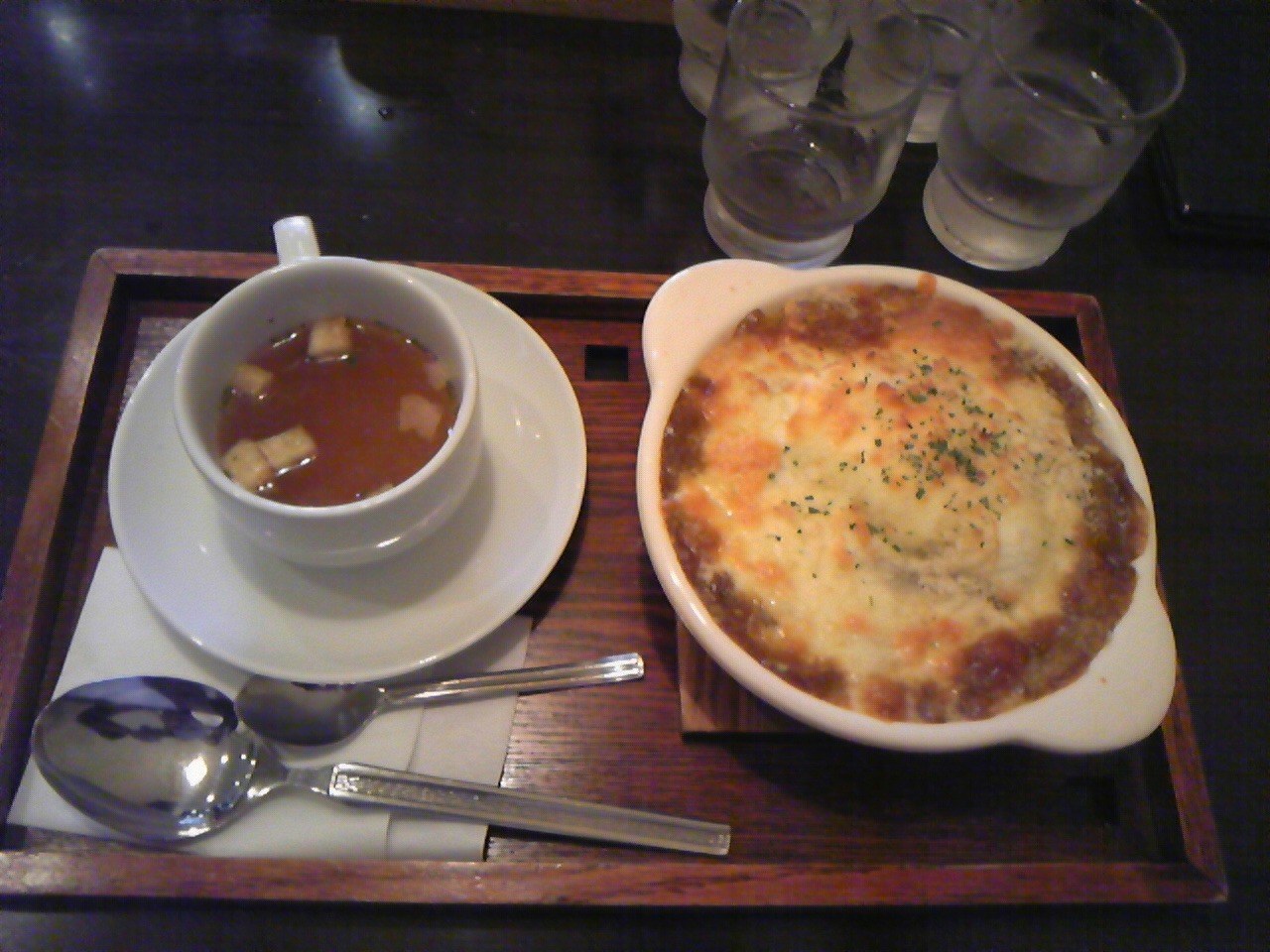 >昼飯は名物の焼きカレー